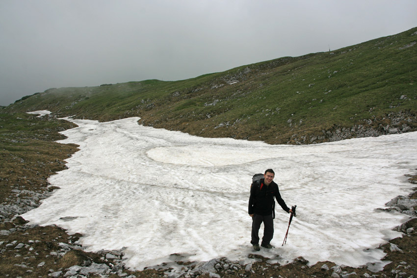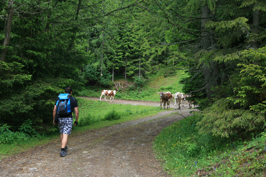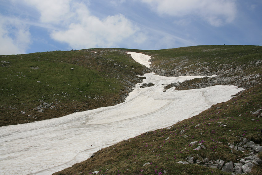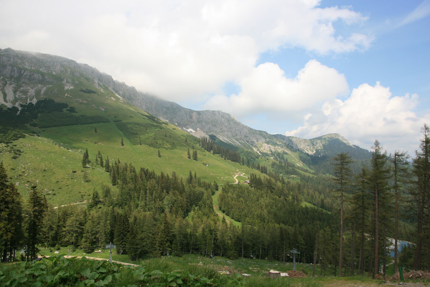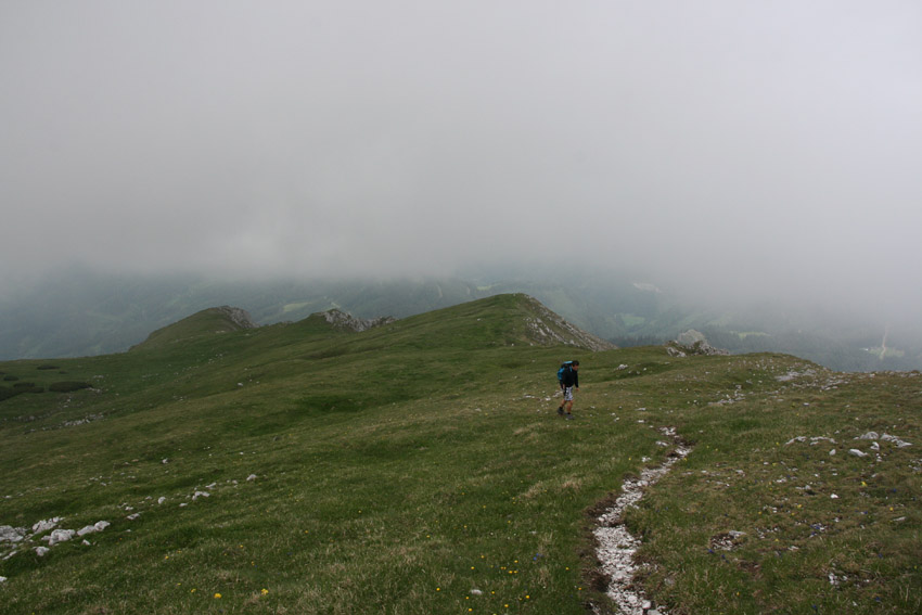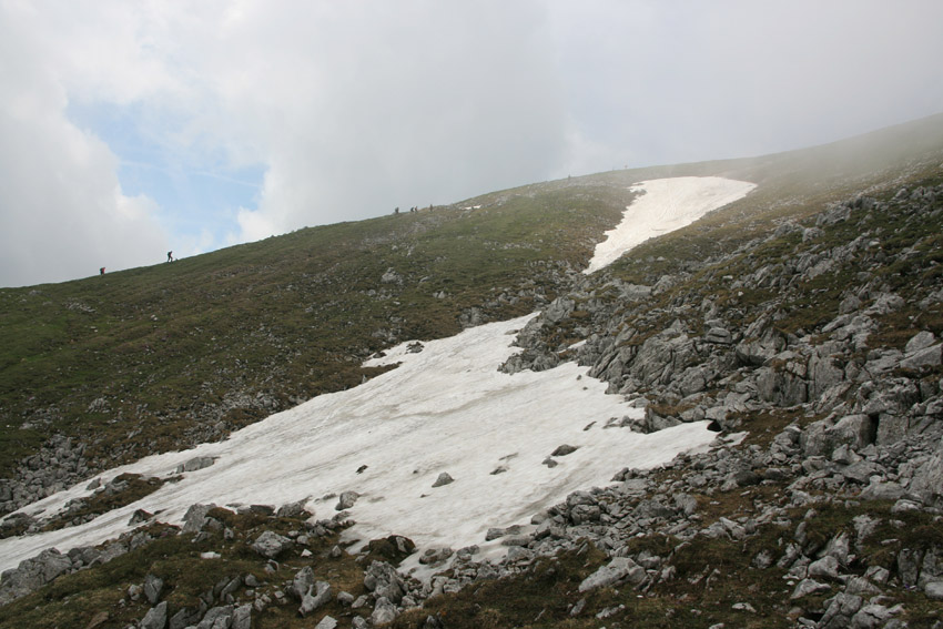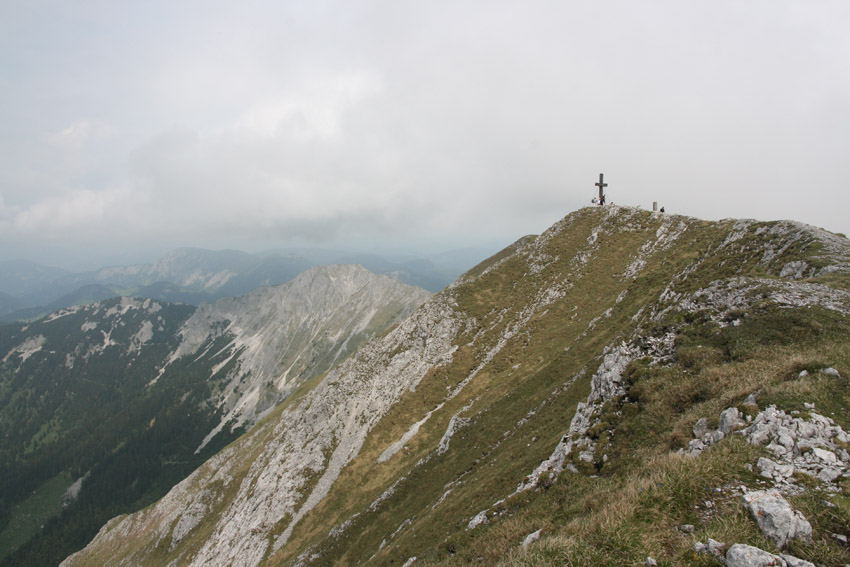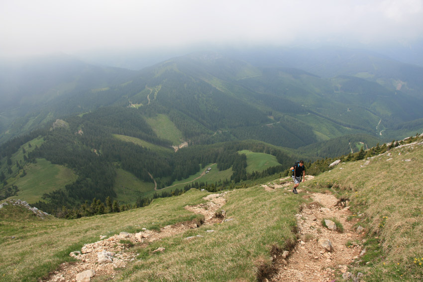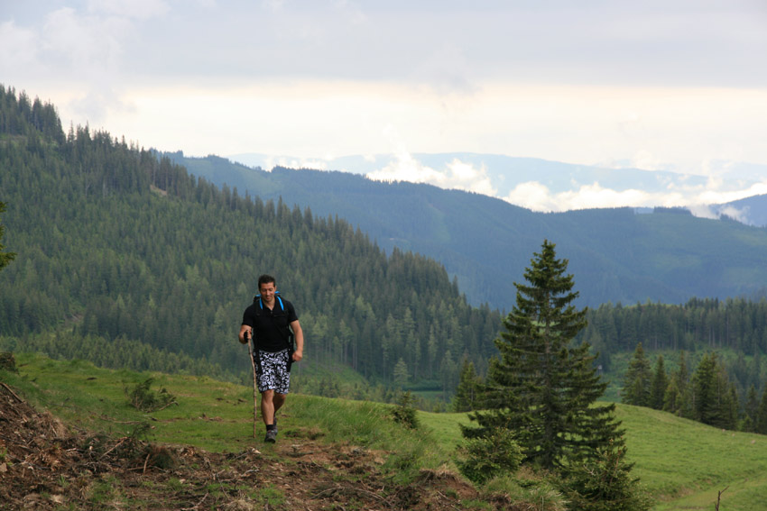 Kurzbeschreibung | Vom Parkplatz auf der Brunnalm über Forststraßen und Waldwege bis zur Rotsohlalm (1413m). Von hier steil auf dem Teufelssteig durch Latschengassen auf die Hochfläche der Veitsch. Dann weiter am Plateaurand entlang bis zum höchsten Punkt Hohe Veitsch mit Gipfelkreuz (1981m). Über Schneefelder zum Graf Meran Haus (1836m) und über den Südhang in Serpentinen wieder zum Parkplatz. |