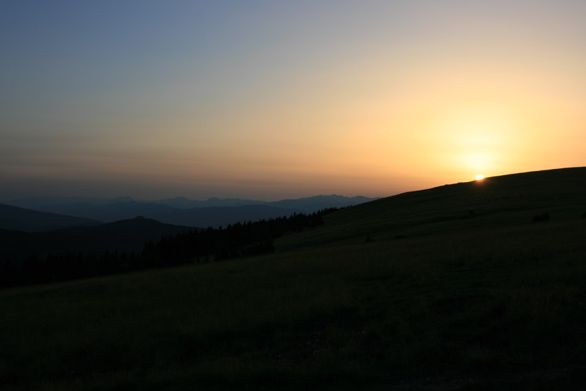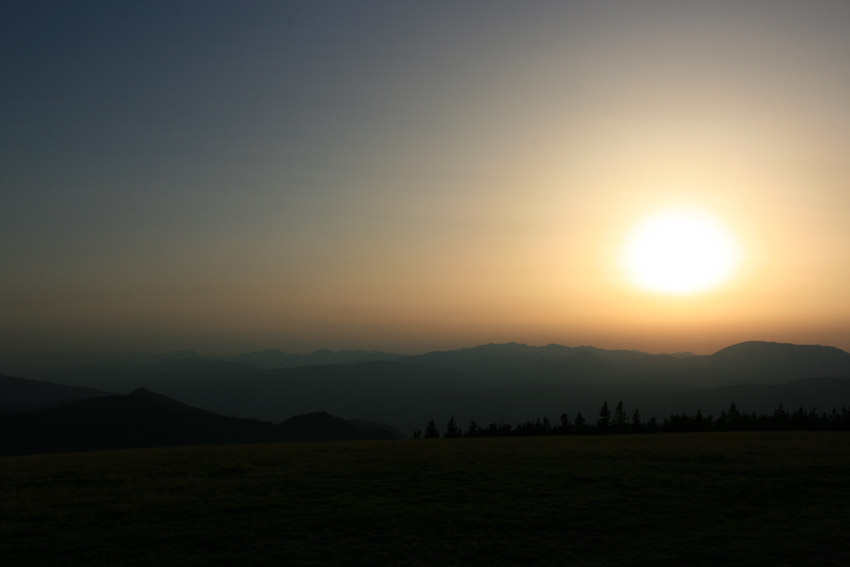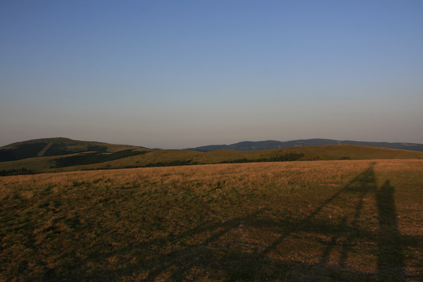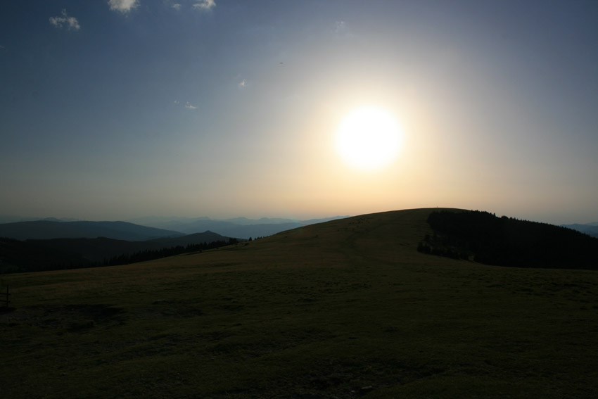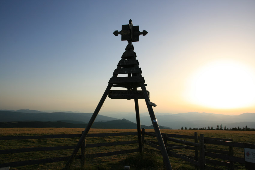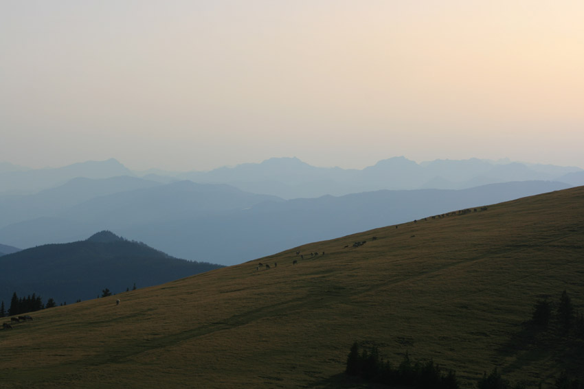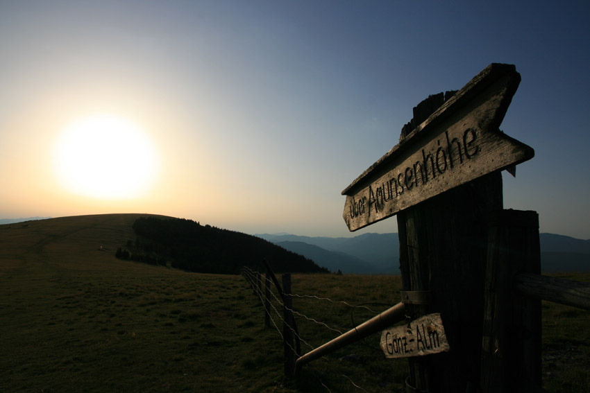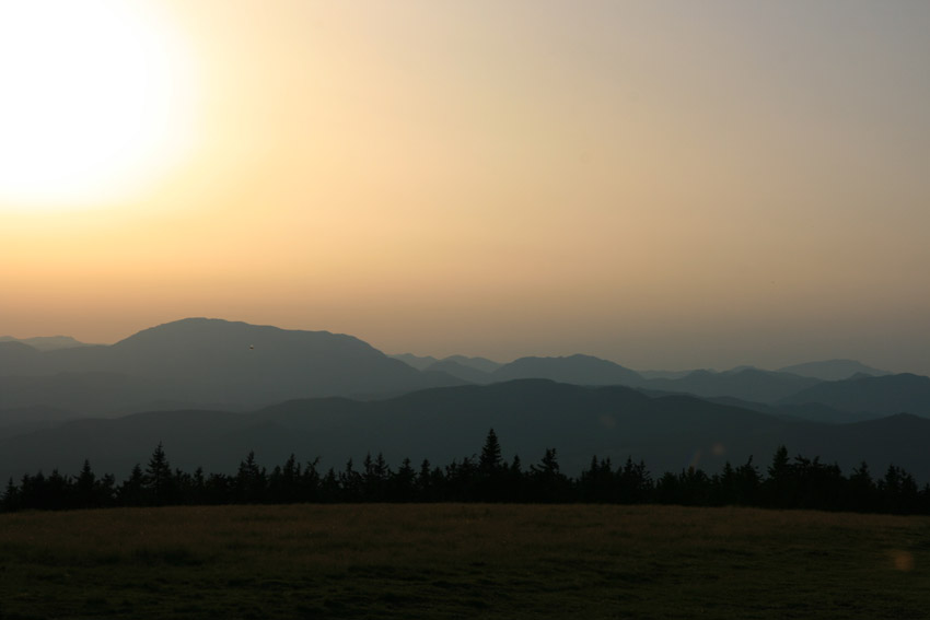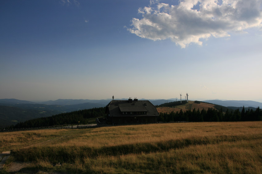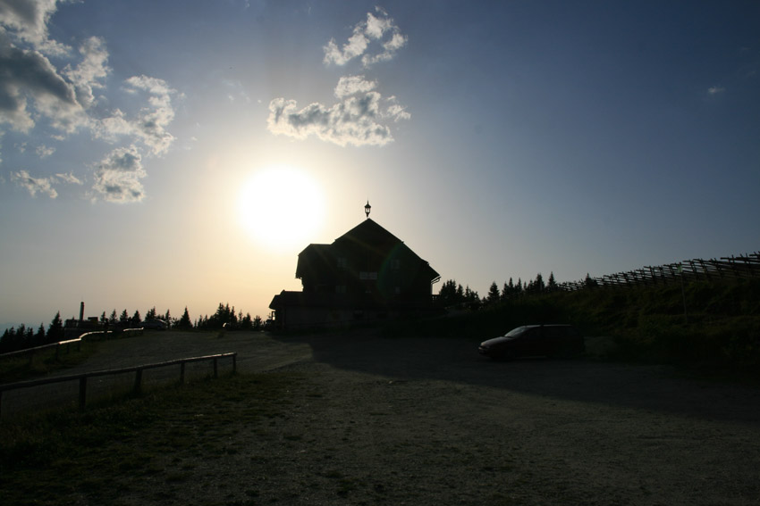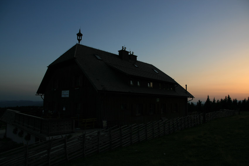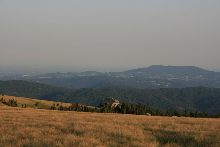 Kurzbeschreibung | Auch am Abend herscht noch große Hitze und selbst auf 1600m Höhe sind die Temperaturen noch deutlich über 20 Grad C. Ich spaziere zunächst über Wiesenflächen zunächst zur Pretulalpe mit der Peter-Bergner-Warte (1656m). Die Sicht ist etwas dunstig aber trotzdem sehr schön. Dann geht es zum Sonnenuntergang noch zur Amundsenhöhe (1666m) und schließlich zurück zur Roseggerhütte, wo mein Teleskop bereits auf die Beobachtungsnacht wartet. |
