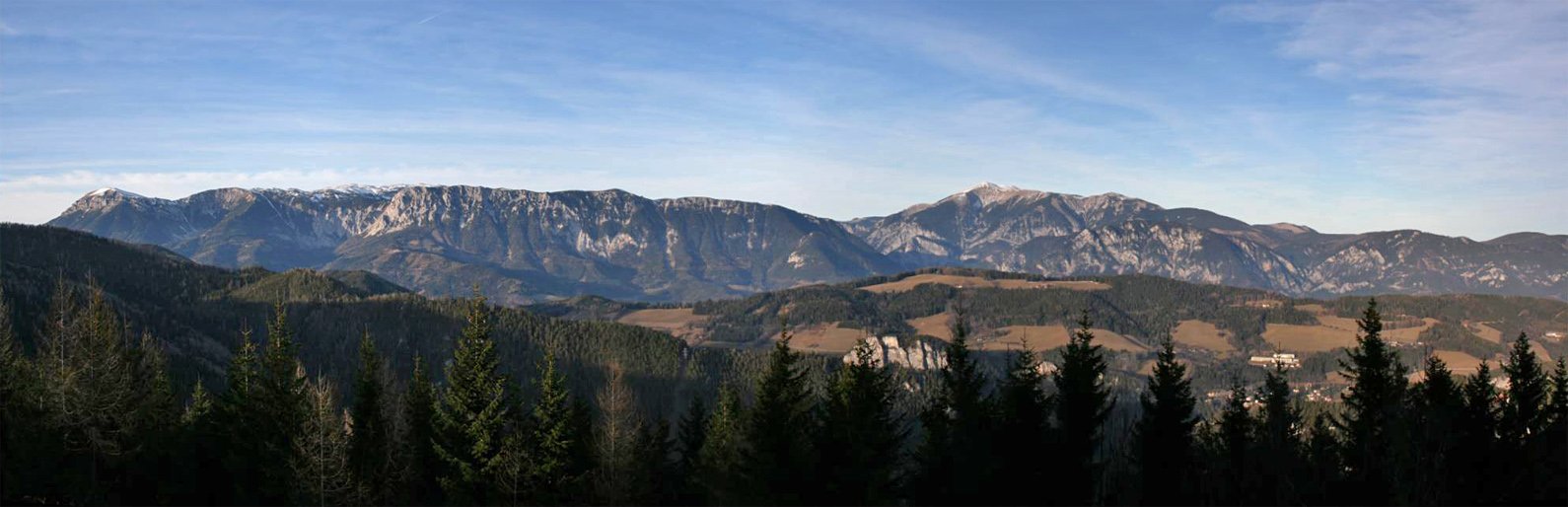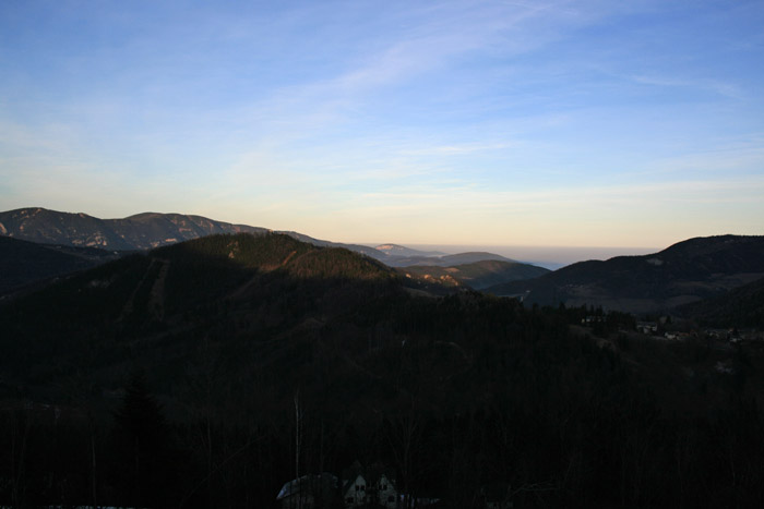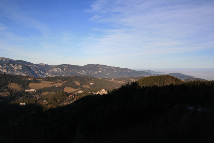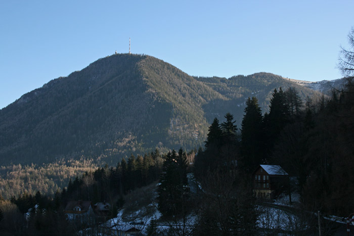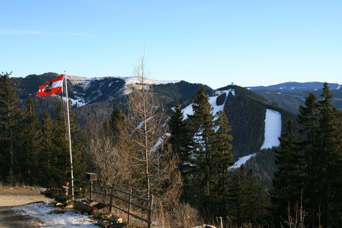 Kurzbeschreibung | Vom Bahnhof Semmering durch den mittlerweile mit Touristen bevölkerten Kurort. Das Ziel des Tages war der Pinkenkogel - direkt nordlich der Passhöhe, der eine überraschend weite Aussicht in die Steiermark bot. |