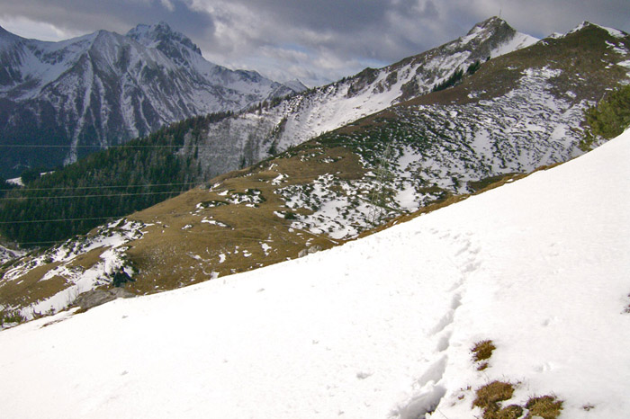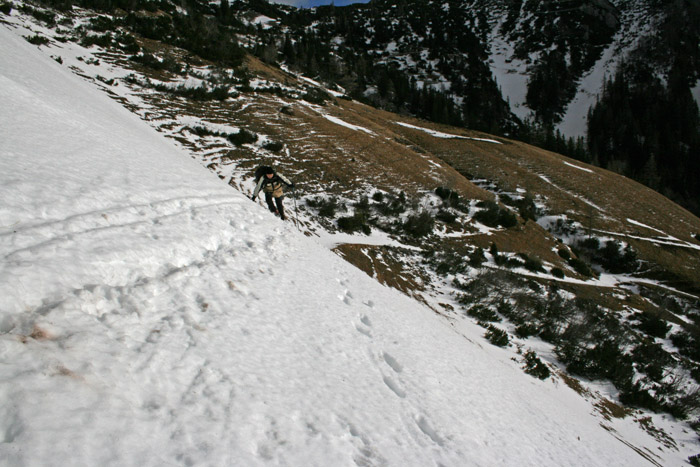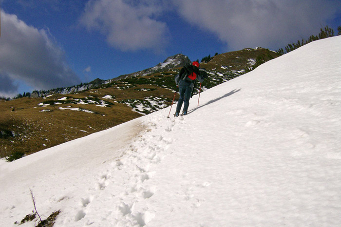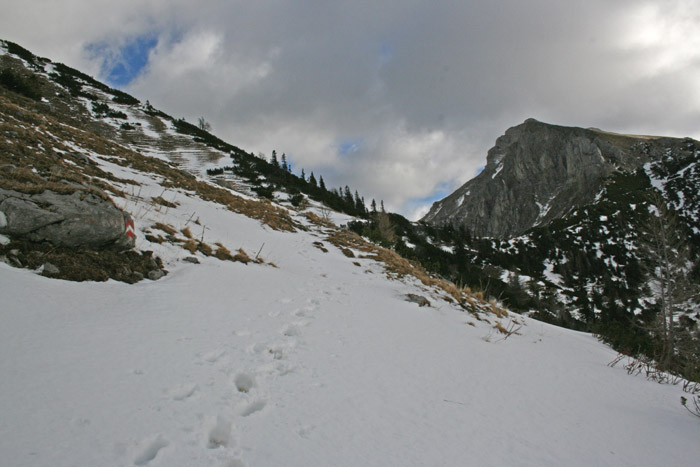 Kurzbeschreibung | Bei kräftigem Wind geht es vom Präbichl über verschneite Forststrassen(Steigeisentest!) bis kurz vor den Lammingsattel wo Harry allein weiter marschiert. Ich kehre zur Leobner Hütte um. Von dort noch ein weiterer Aufstieg zur Umgehung eines Schneefeldes um schliesslich wieder zum Präbichl zurückzukehren. |