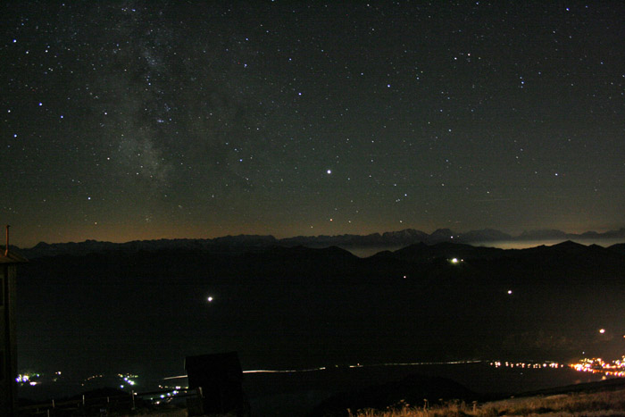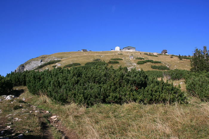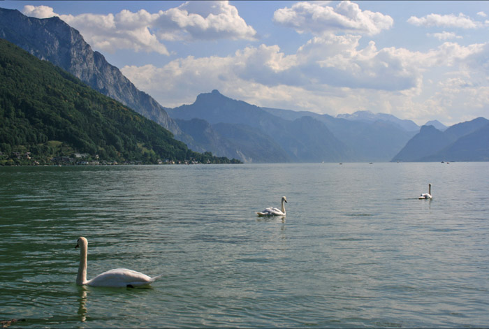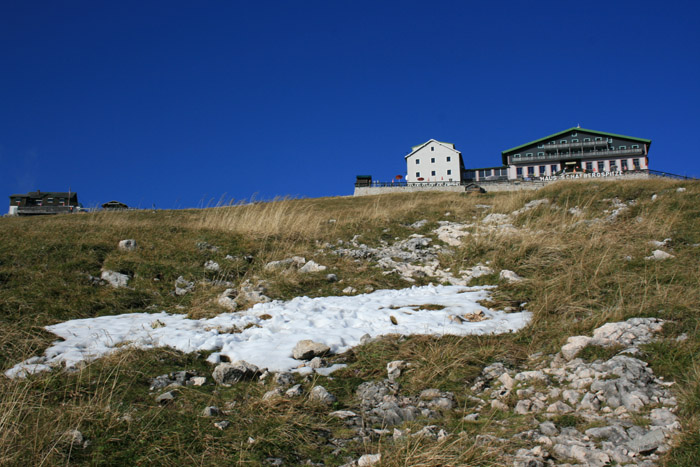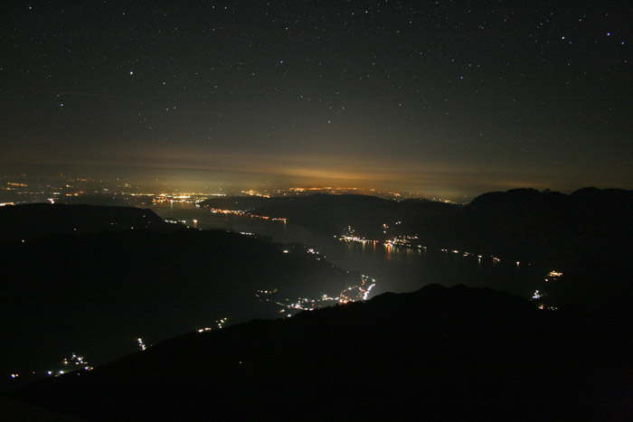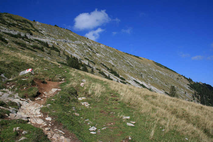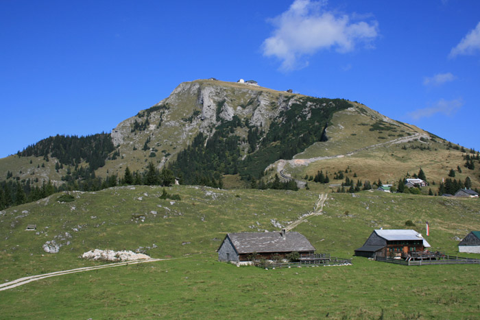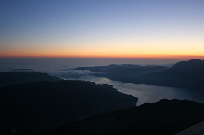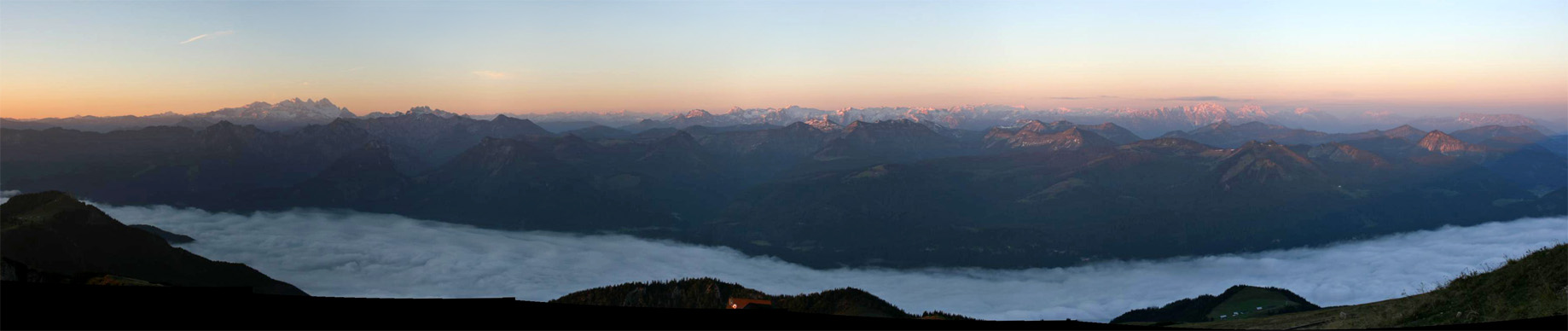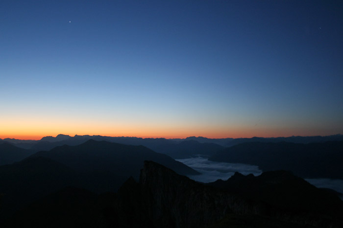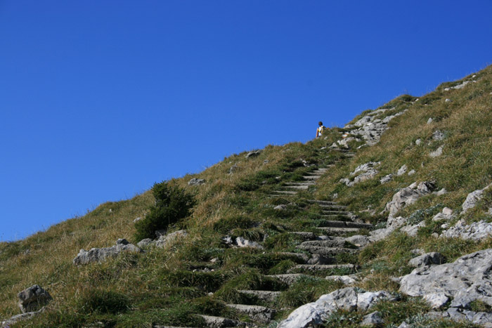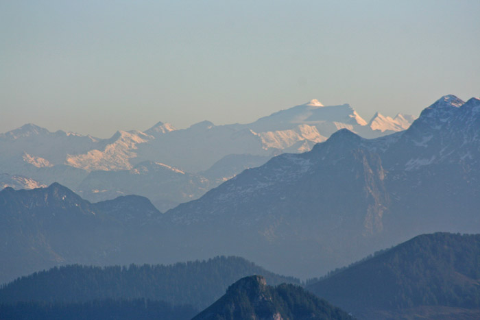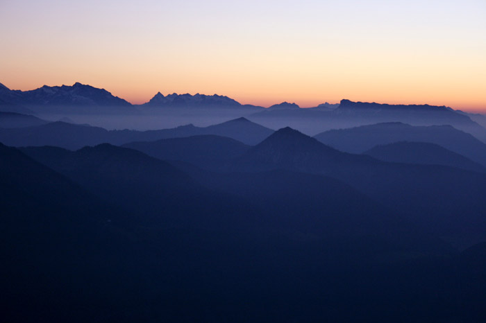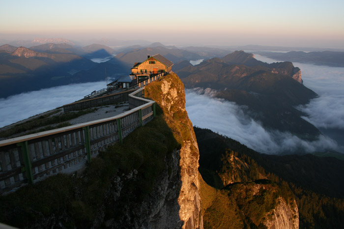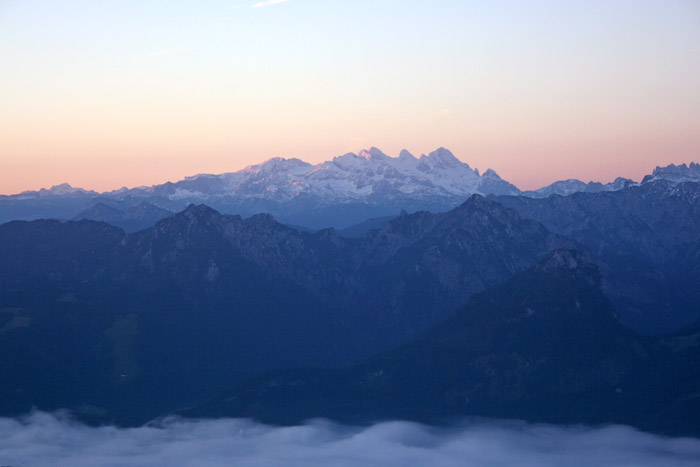 Überwältigend schöne Tour! Von St. Gilgen mit dem Bus nach St. Wolfgang und von dort bis zur Schafbergbahn. Anfangs durch den Wald neben den Bahngleisen durch den Wald zur Schafbergalm (1326m) mit traumhaftem Ausblick zum Mondsee und zur Schafbergspitze. Von dort durch steil aber gut gebares Gelände bis zum Gipfelhotel. Oben erwartete mich ein traumhafter Ausblick auf die Seen und den Dachstein bis zu den Hohen Tauern. Übernachtung im Hotel. Am nächsten Morgen ging es für ein paar Fotos in steiles Gelände Richtung Spinnerin bevor mich die Schafbergbahn bequem ins Tal brachte. |