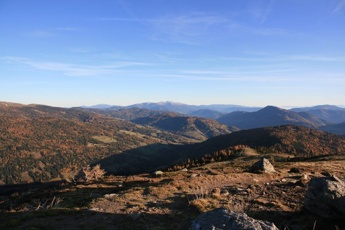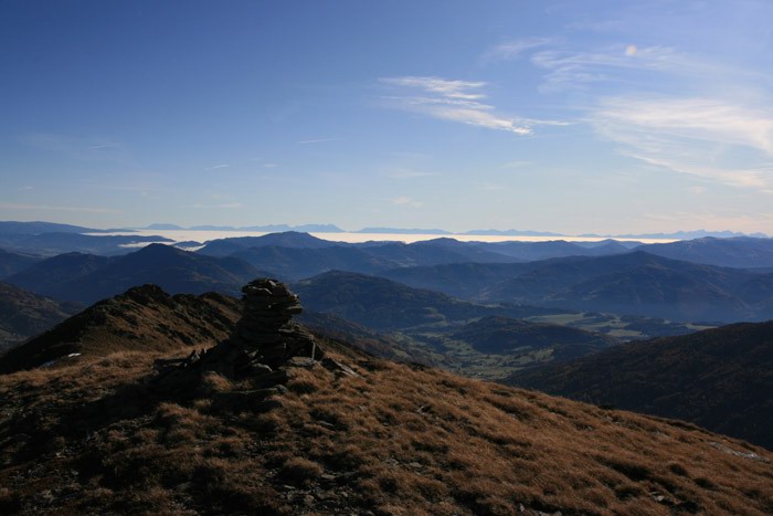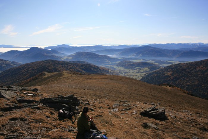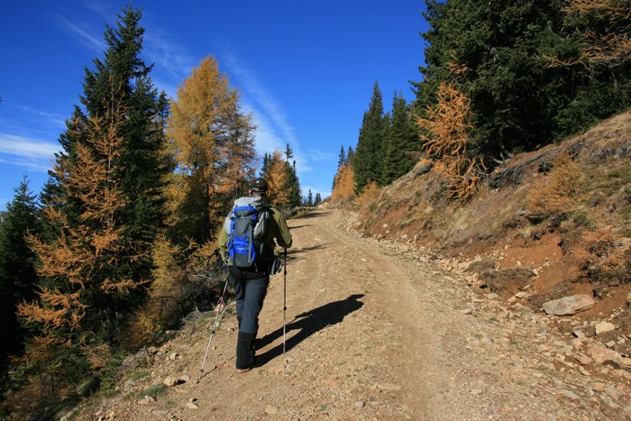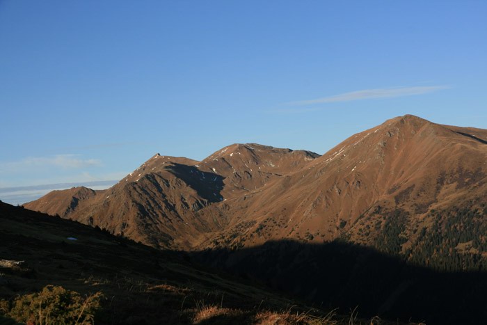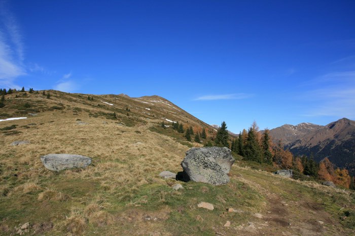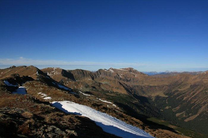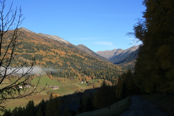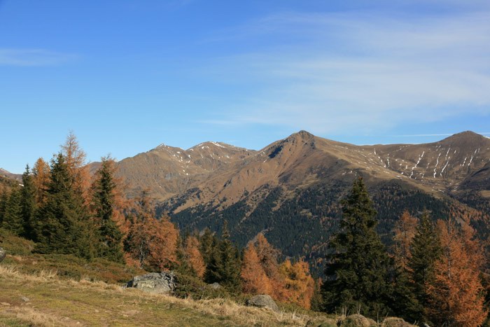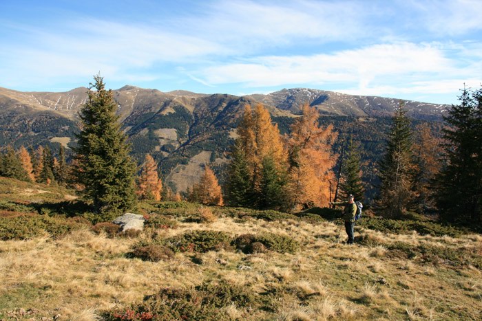 Kurzbeschreibung | Bei fantastischem Herbstwetter aus dem Hinteregger Graben über eine Forststrasse zur Vorderen Rossalmhütte (1647m). Von dort über den Kamm der Rossalm bis zum Rossalmspitz (2237m). Am Grat weiter zur Gastrumerhöhe (2281m) und am gleichen Weg zurück zum Ausgangspunkt. |
