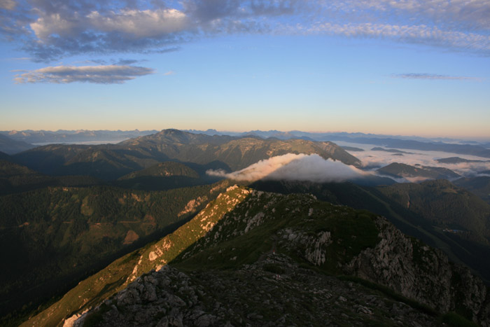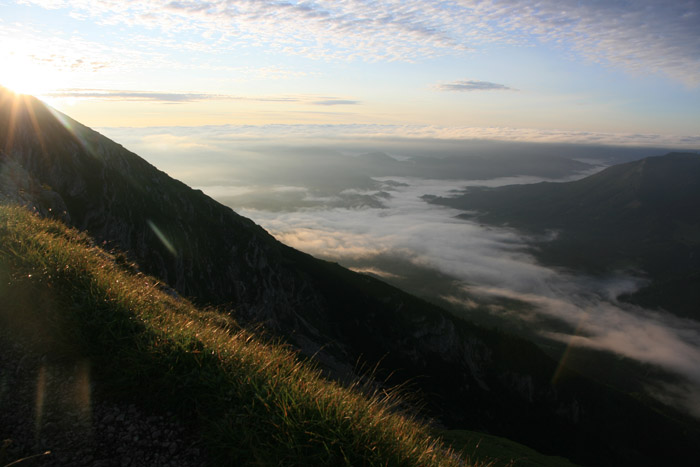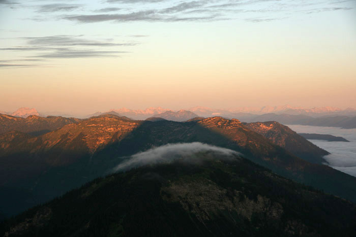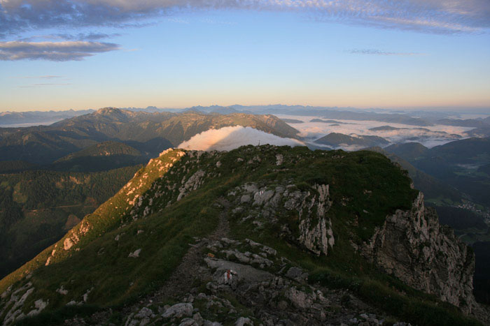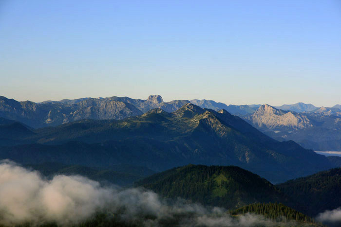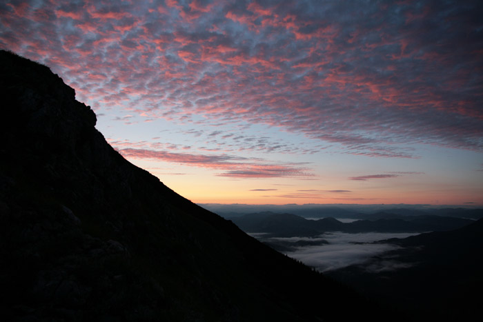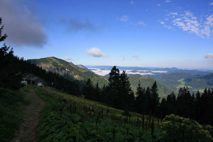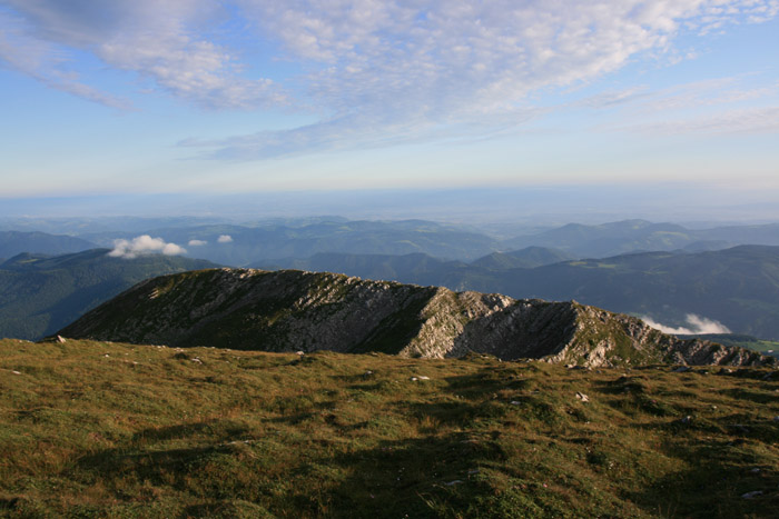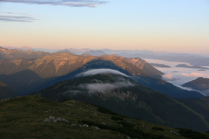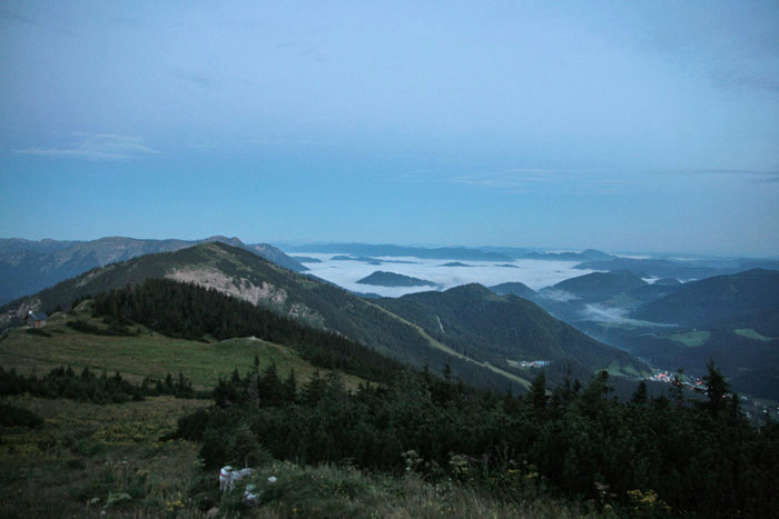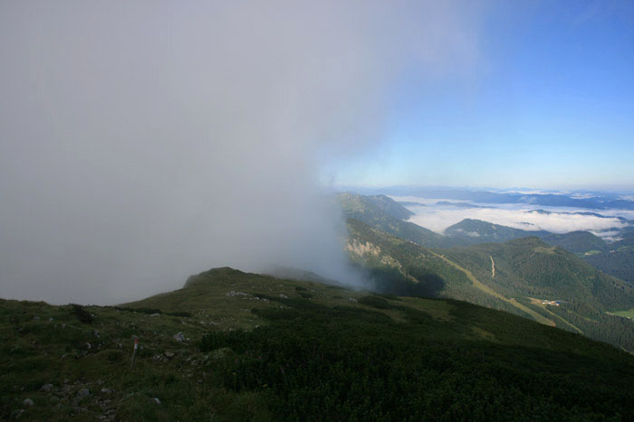 Kurzbeschreibung | Vom Parkplatz der Ötscherlifte in Weitental über sehr steile und unschöne Forststrassen der Skipiste hinauf zum Ötscherhaus. Nach einer Stärkung und einer kurzen Nacht geht es um 4:30h weiter RichtungÖtschergipfel. Bei traumhaften Wetter überragende Rundsicht. Beim Abstieg gerate ich kurz in Nebel bevor ich nach einem Frühstück im Ötscherhaus wieder ins Tal zurückkehre. |
